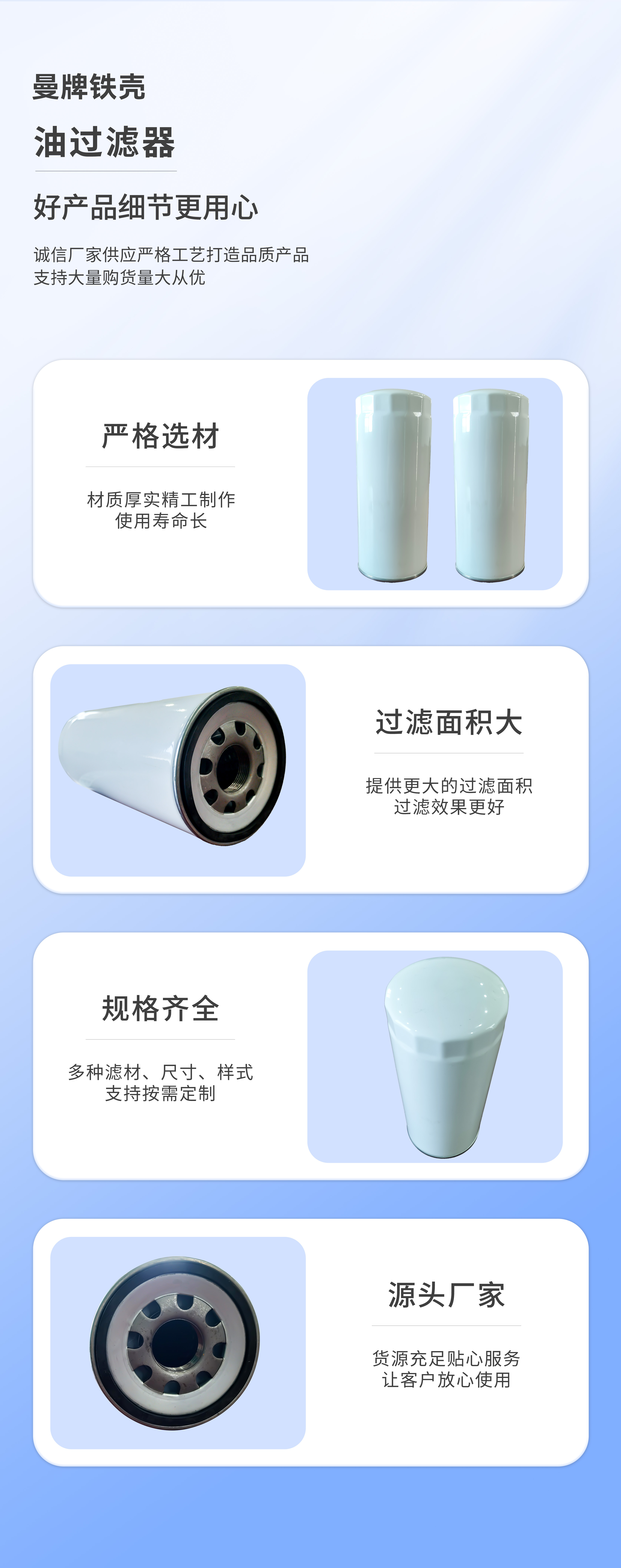 【產(chǎn)品簡(jiǎn)介】:曼牌濾清器廣泛應(yīng)用在乘用車、商用車、工程機(jī)械和工業(yè)領(lǐng)域,主要負(fù)責(zé)清除空氣中的微粒雜質(zhì)的裝置。其主要作用是濾除將要進(jìn)入汽缸的空氣中有害雜質(zhì),以減少汽缸、活塞、活塞環(huán)、氣門(mén)及氣門(mén)座的早期磨損和氧化。